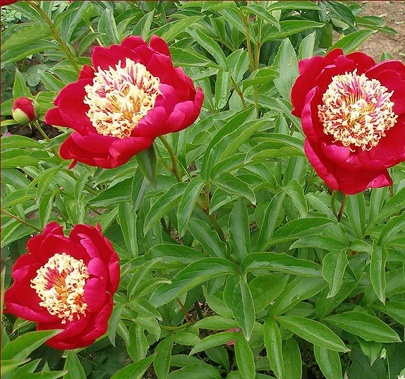 Цветущие куст можно сравнить с фейерверком в честь возвращения теплых дней. Лепестки цветов пиона нежные, широкие слегка закручены, диаметр цветка 15-16 см. Цветение обильное и продолжительное сопровождается тонким еле уловимым приятным ароматом. Высота куста достигает 80-90 см, куст пышный, раскидистый. Открытая корневая система - корень/куст.