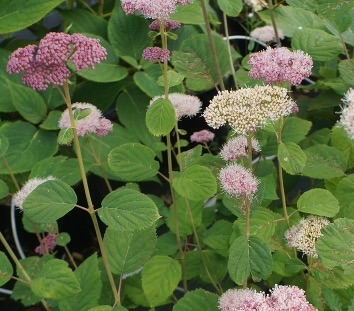 высота и ширина до 250 -300см, один из наиболее декоративных кустарников, цветущий обильно с июля до сентября на побегах текущего года, цветки белые, при отцветании розовые, собраны в крупные соцветия длиной и шириной 25 см, с приятным ароматом, срезанные соцветия используются как сухоцветы, любит влажную почву, место солнечное или полутенистое.