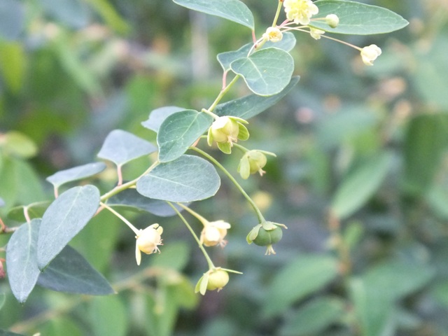 Кустарник высотой до 60 см с тонкими побегами. Листья тонкие, яйцевидные темно салатового цвета. Цветки на длинных тонких цветоножках, цвет нежно салатового, размером 1см. Цветет конец весны до июля.Форма куста шарообразная , компактная,не требует стрижки.Не прихотливая в уходе, не требовательная к месту посадки и почве.