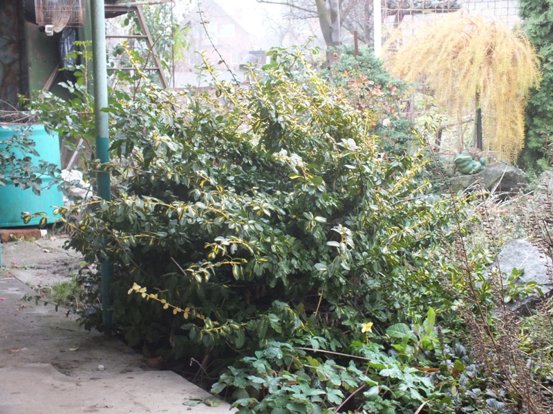Многолетний вечнозеленый кустарник , ствол желтый ,окраска— желтые пятна на середине листа.Высота и обьем куста до 1 м,